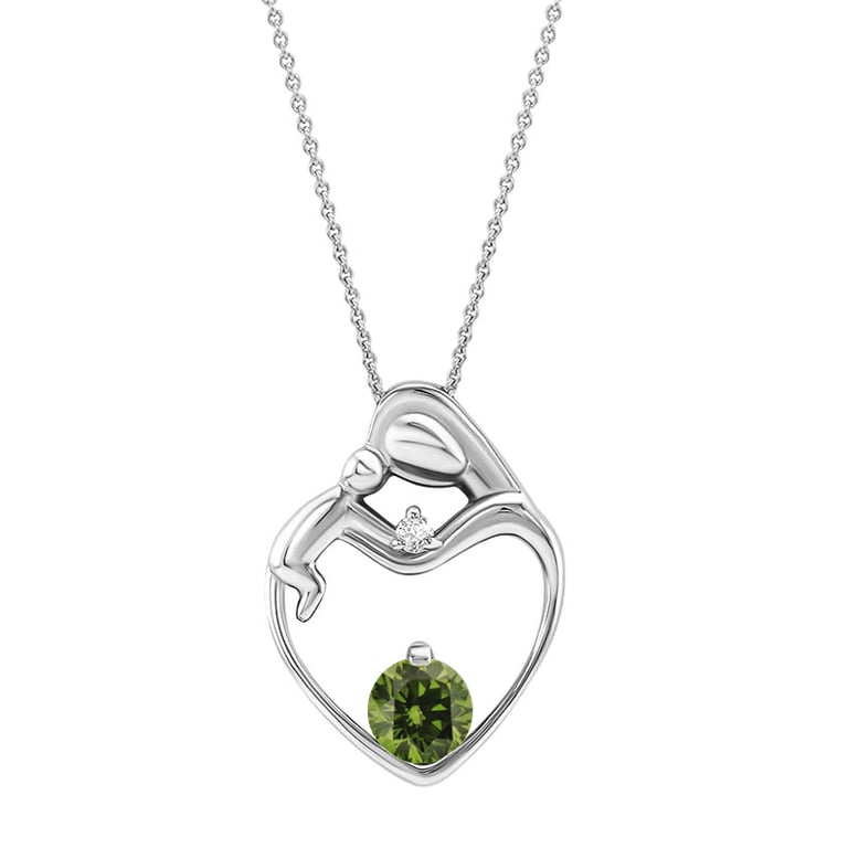Platinanhänger Mutter und Kind mit grünem und klaren Diamanten Ella