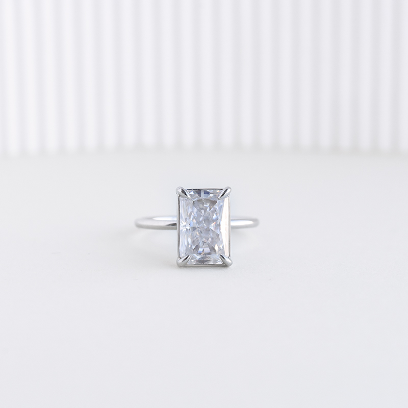 Platinring mit 11x7,25 mm Moissanit und dezenter Platinring Elisa