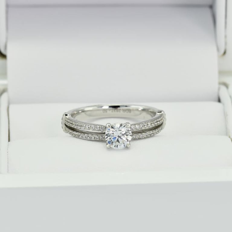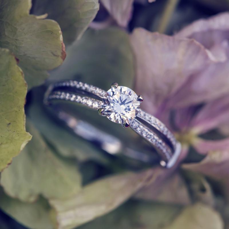 • ein Verlobungsring in Platin, der ein Klassiker mit dem gewissen Etwas ist