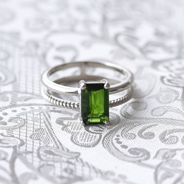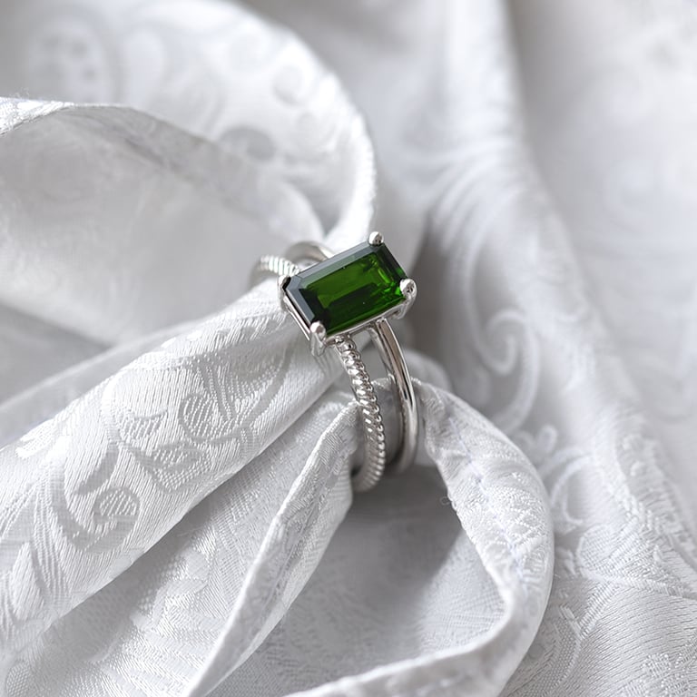 Platinring mit Diopsid im Smaragdschliff Sachas