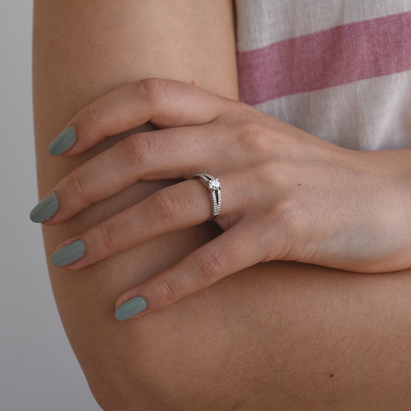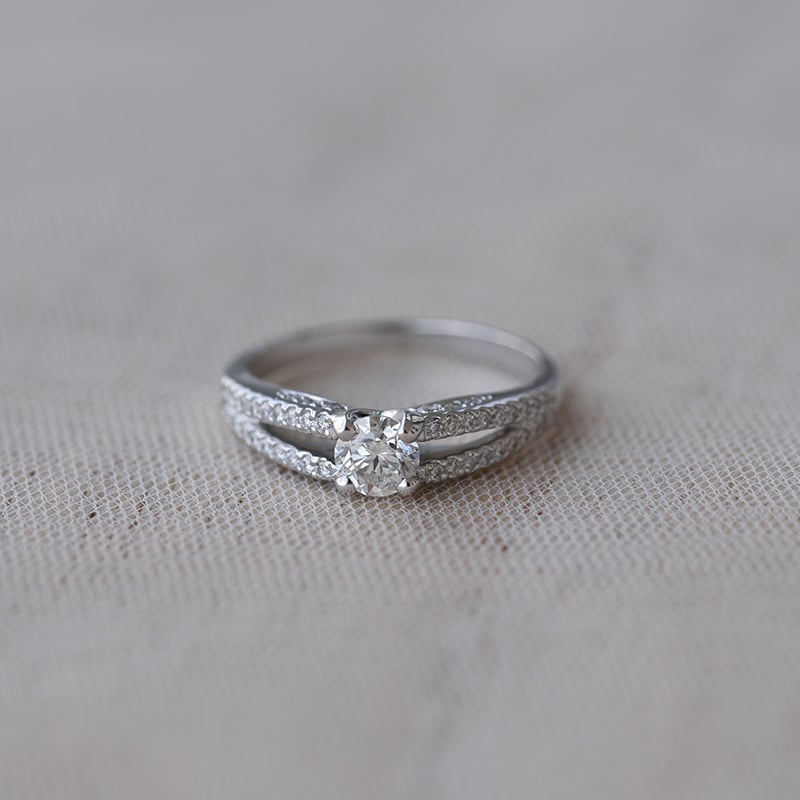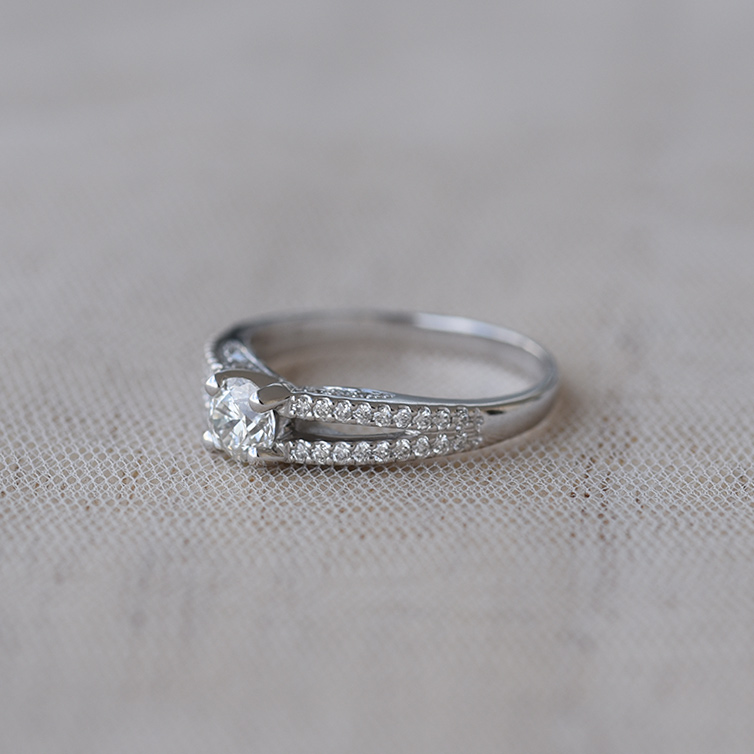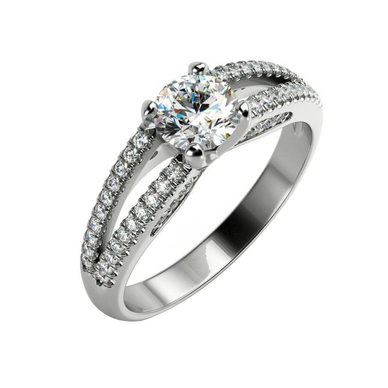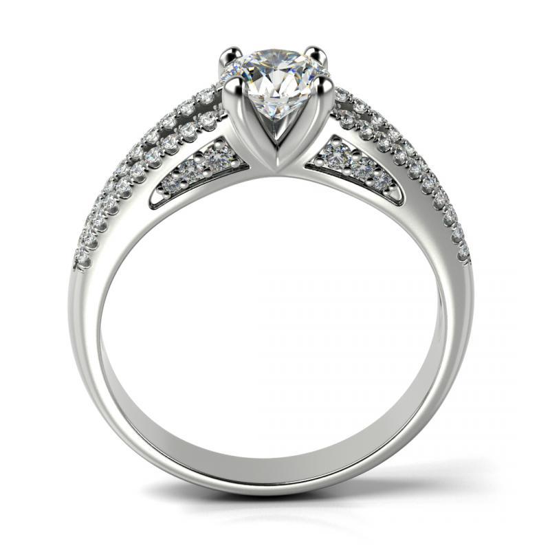 • die durchbrochene, mit Diamanten besetzte Ringschiene und das Platin sind perfekte Begleiter eines runden Diamanten