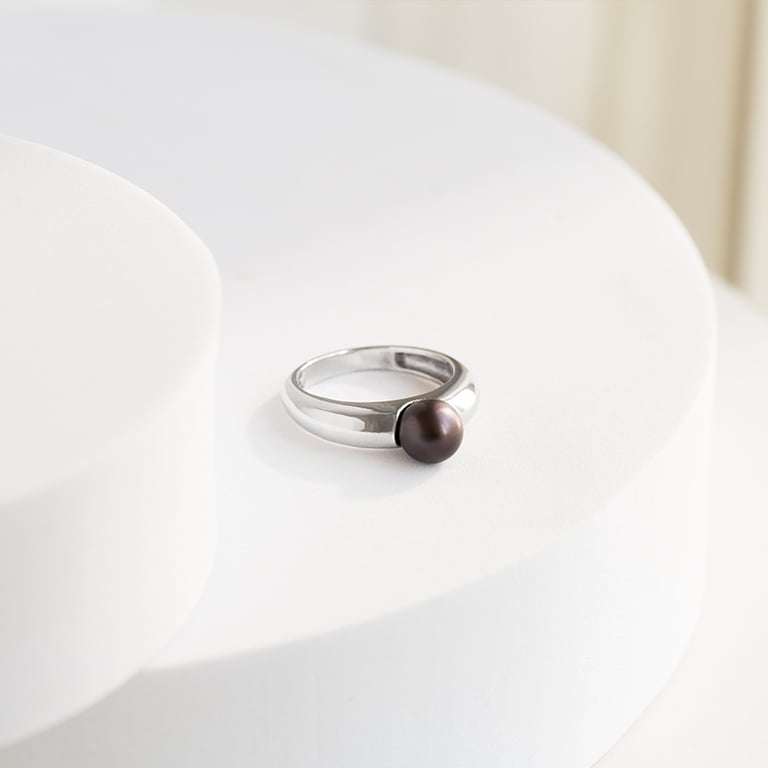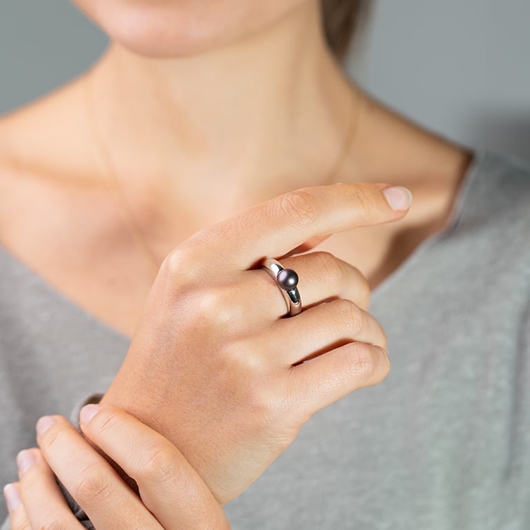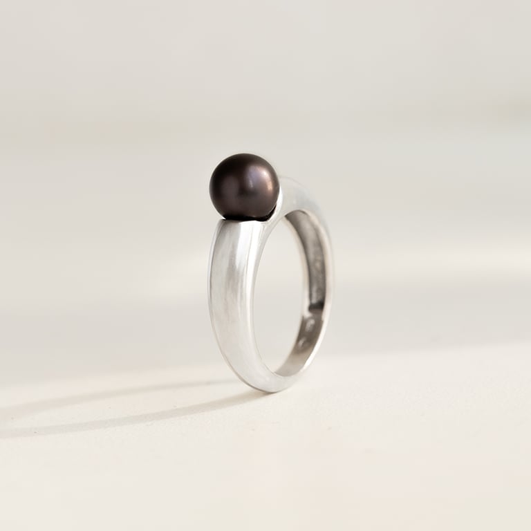 • in den massiven Ring ist eine schwarze Perle eingelassen
