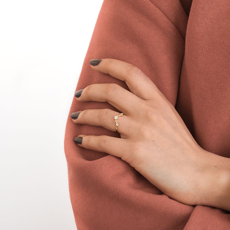 • unkonventionell zu einer Spitze geformter bezaubernder Ring