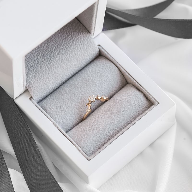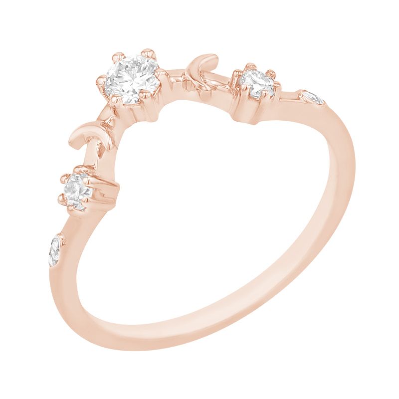 • außer den Diamanten und vier Moissaniten zieren auch zwei Mondsicheln diesen Ring