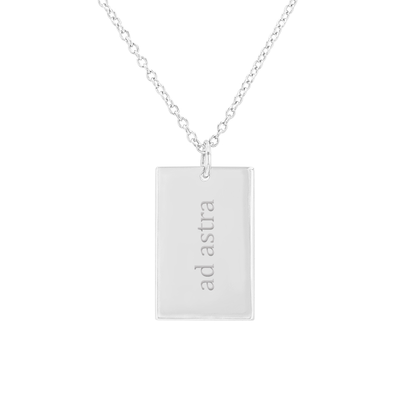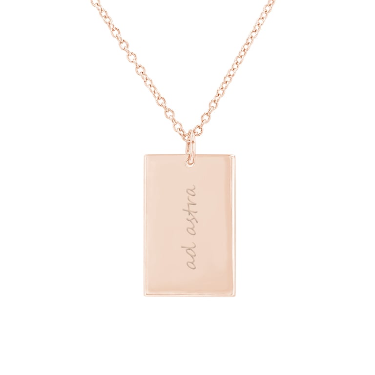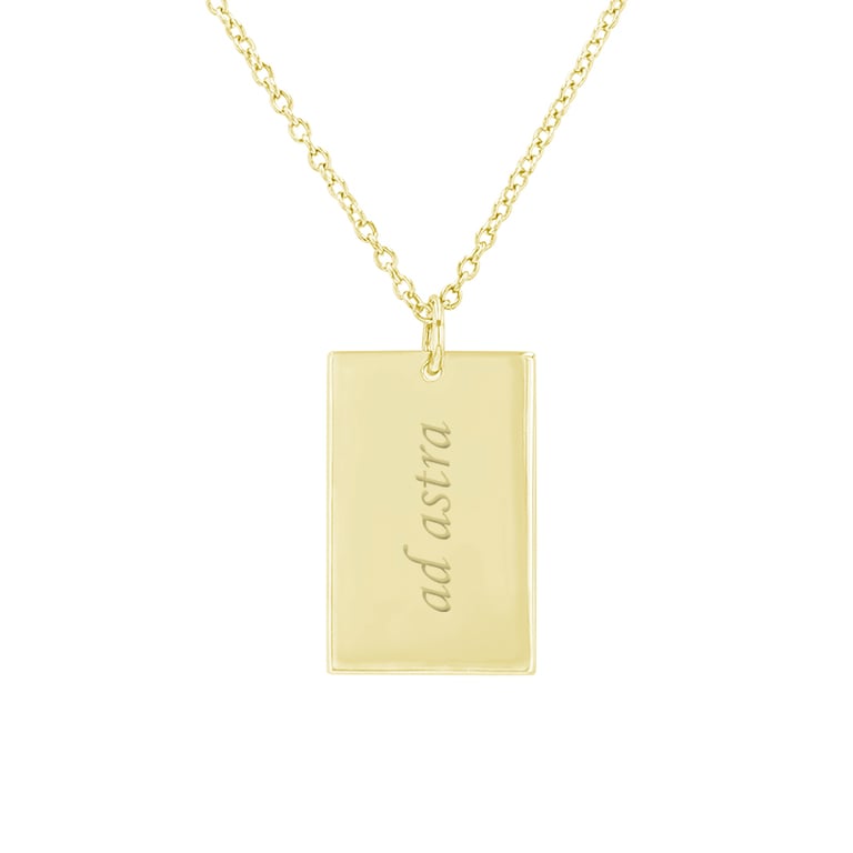 Rechteckiger Anhänger aus Gold mit einer doppelseitigen Gravur Aeryn