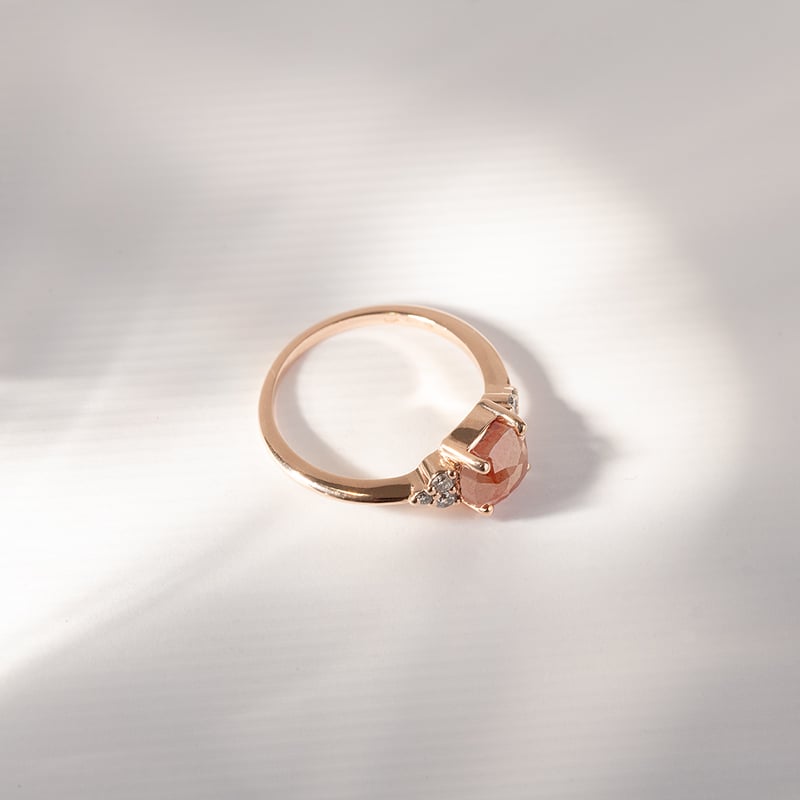• verziert mit einem rosa Salt and Pepper Diamanten in einer bezaubernden Kissenform