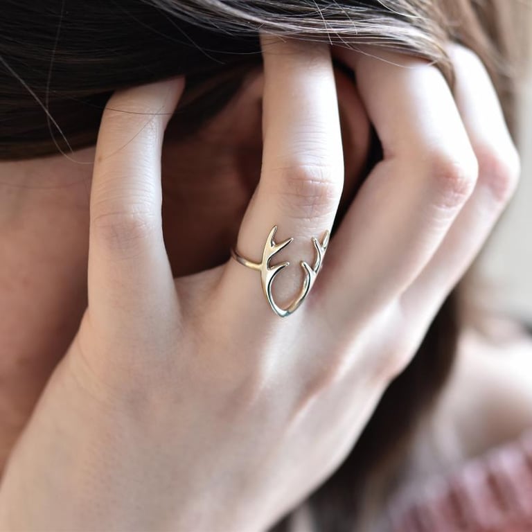 • der goldene Ring wird durch ein zartes Hirschgeweih geschmückt