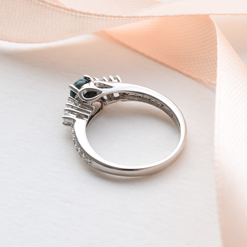 • origineller Ring mit schwarzem Opal, der durch faszinierende Farbreflexe begeistert