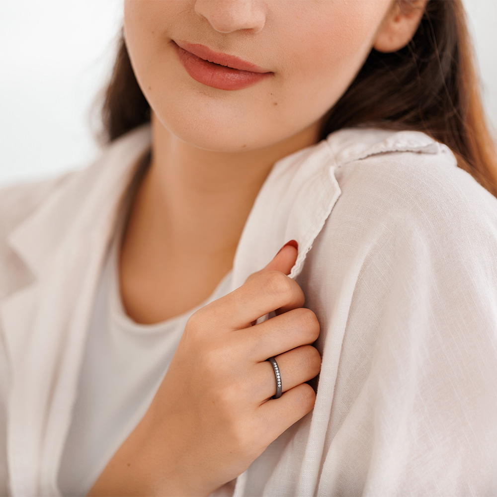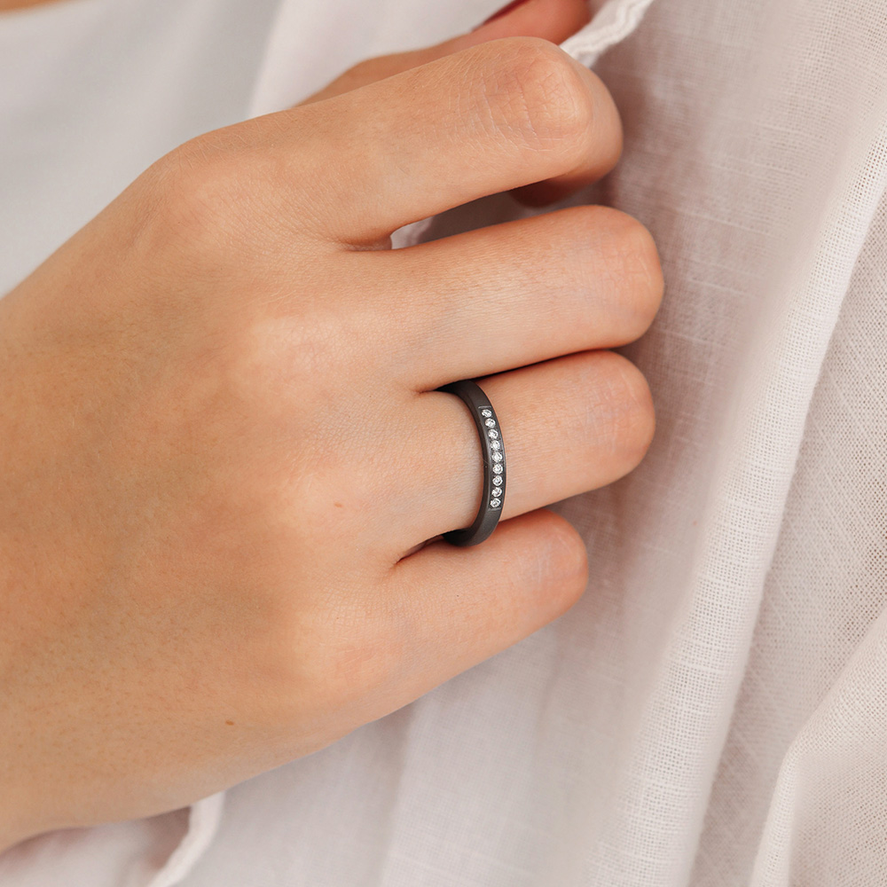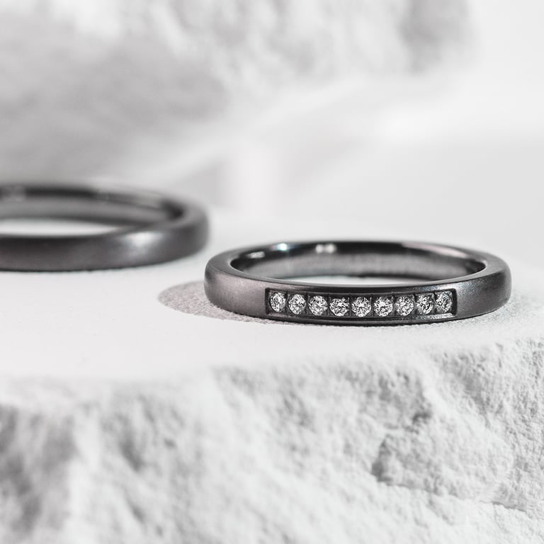 • die Tantaloberfläche verleiht dem Ringen einen einzigartigen grauen Farbton und hypoallergene Eigenschaften