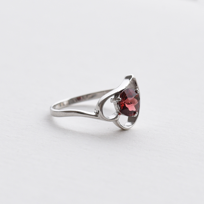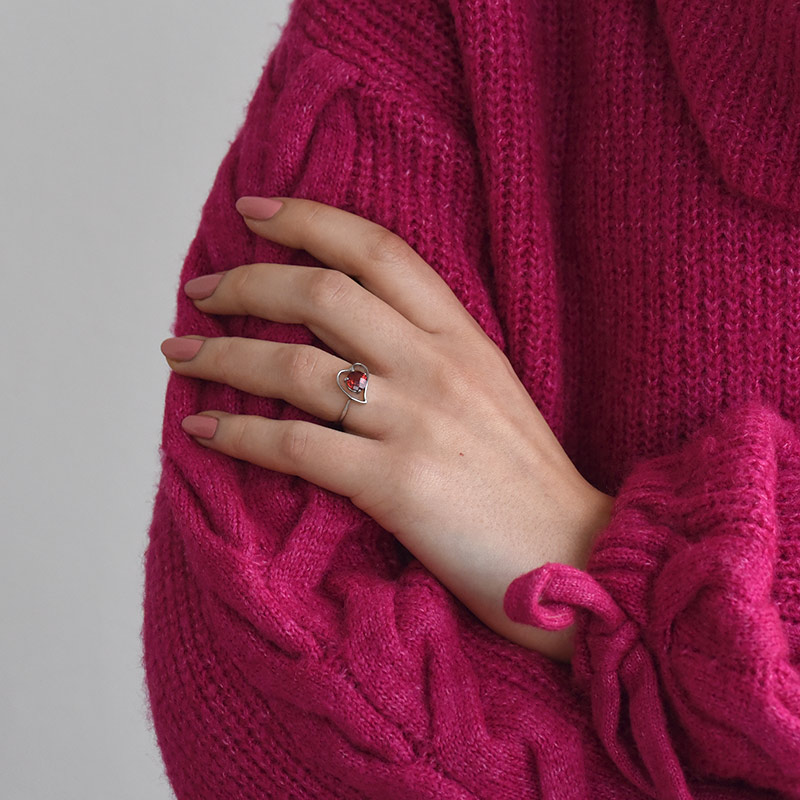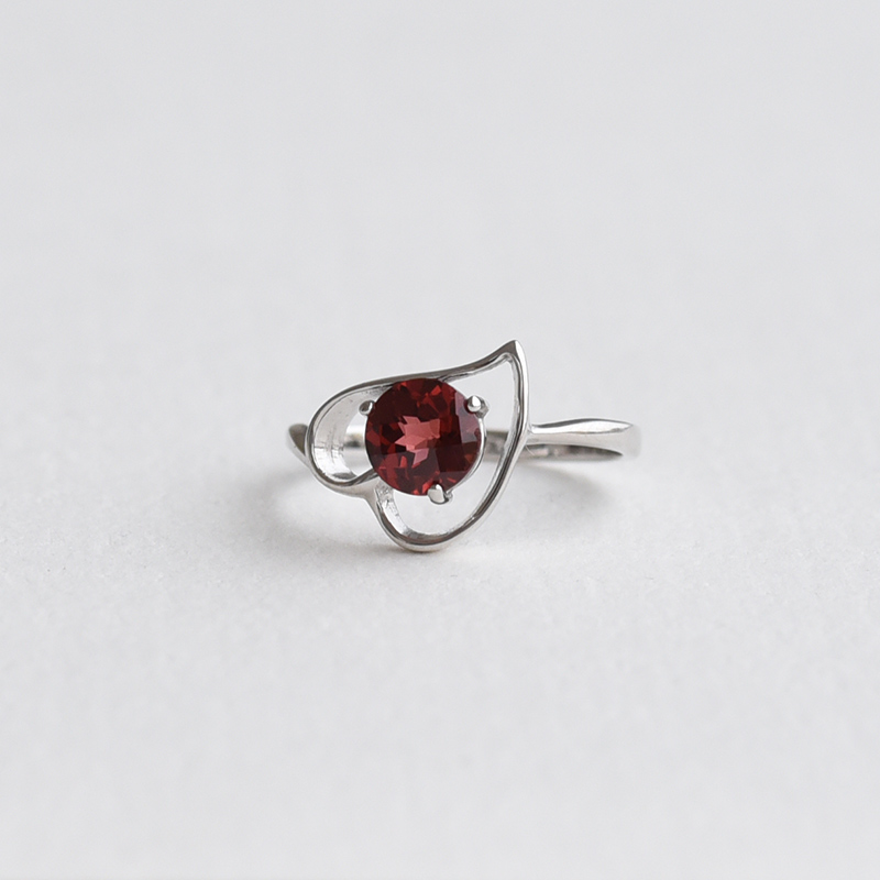 • romantischer silberner Ring in Herzform mit einem Granat besetzt