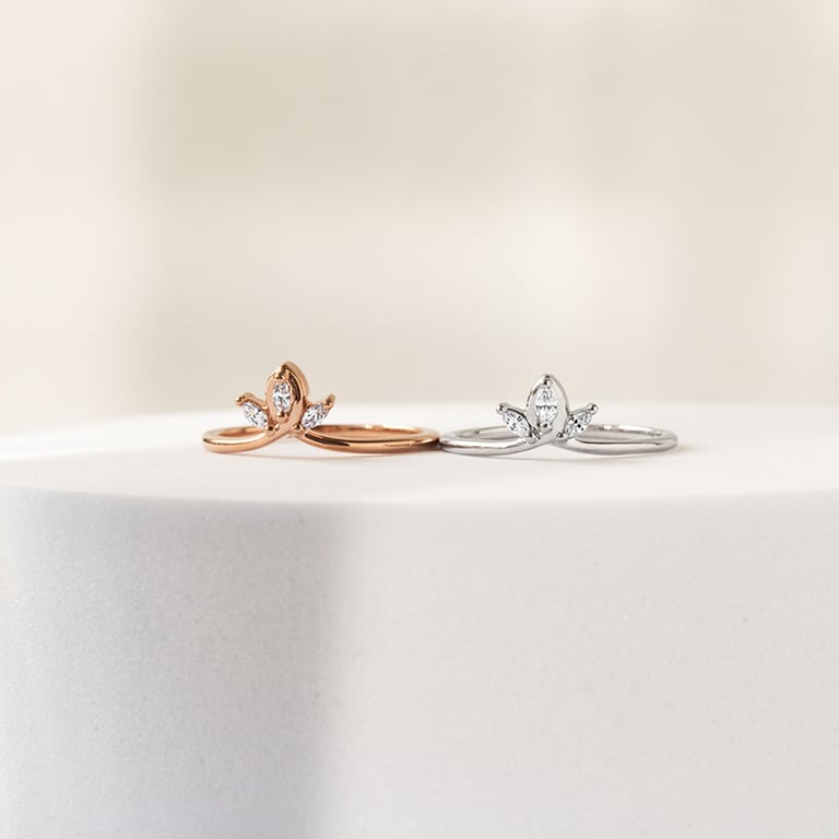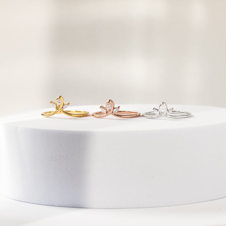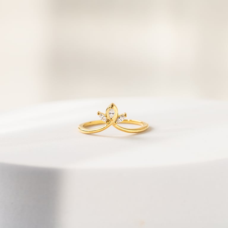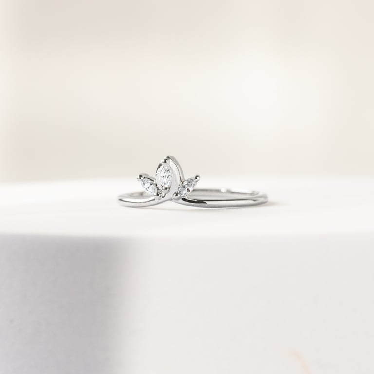 • ein zarter Ring in V-Form, der mit drei Marquise Diamanten aus dem Labor verziert ist