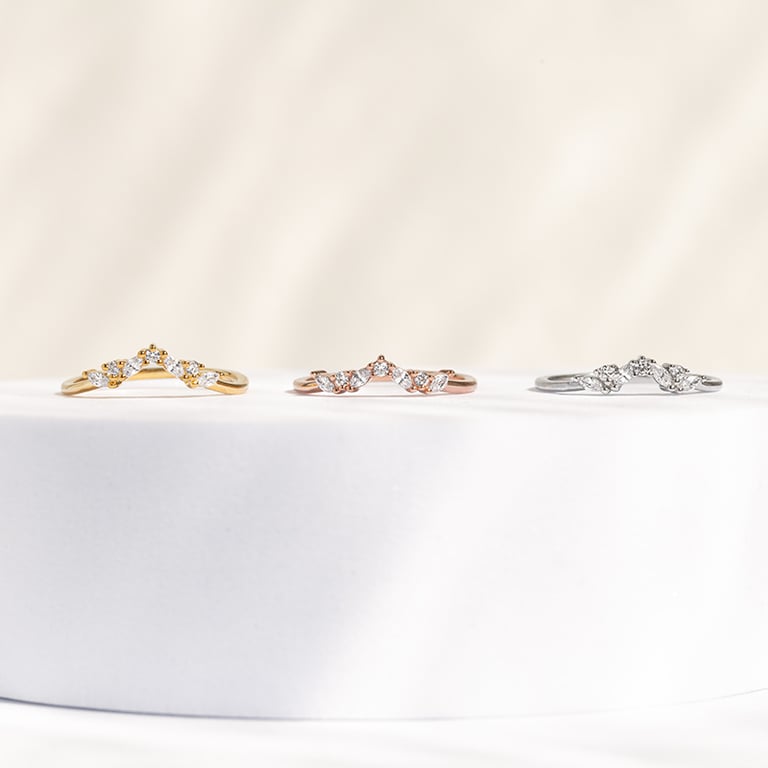 • wählen Sie Ihre bevorzugte Größe des V-Ausschnitts, damit Sie dieses Schmuckstück mit einem anderen Ring kombinieren können, zum Beispiel mit Ihrem Verlobungsring