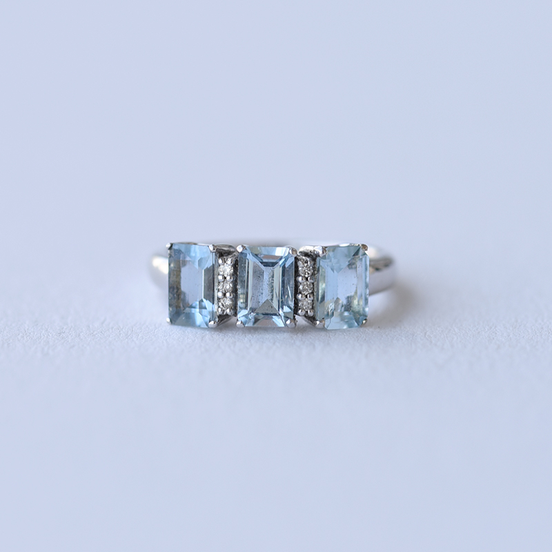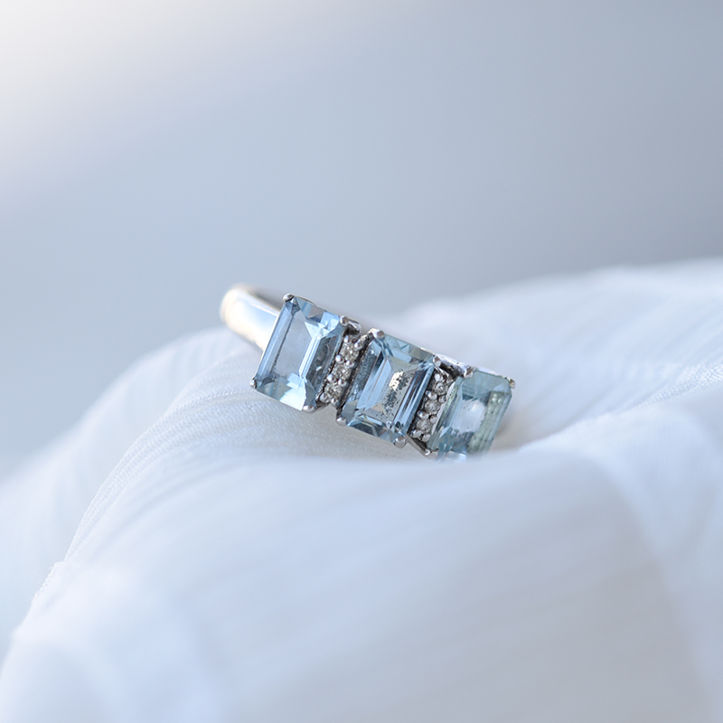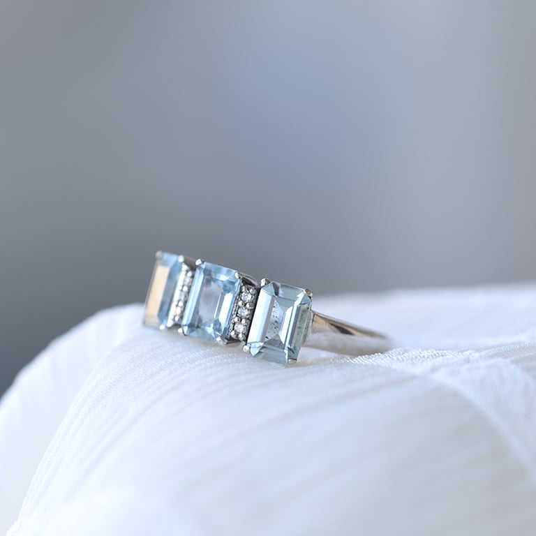 • eindrucksvoller Ring aus Gold mit Aquamarinen und Diamanten