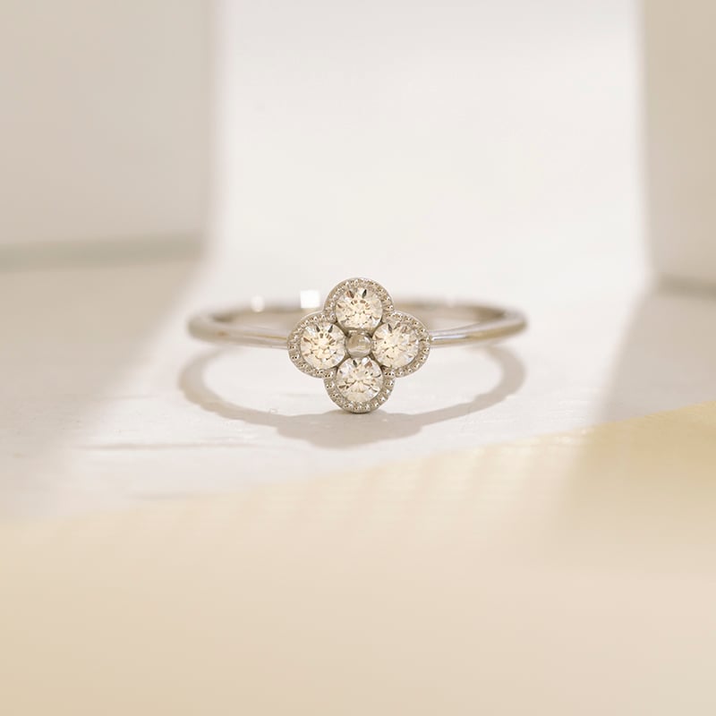 • 4 natürliche Diamanten, die zu einer Blume zusammengesetzt sind, verleihen dem Ring etwas Besonderes