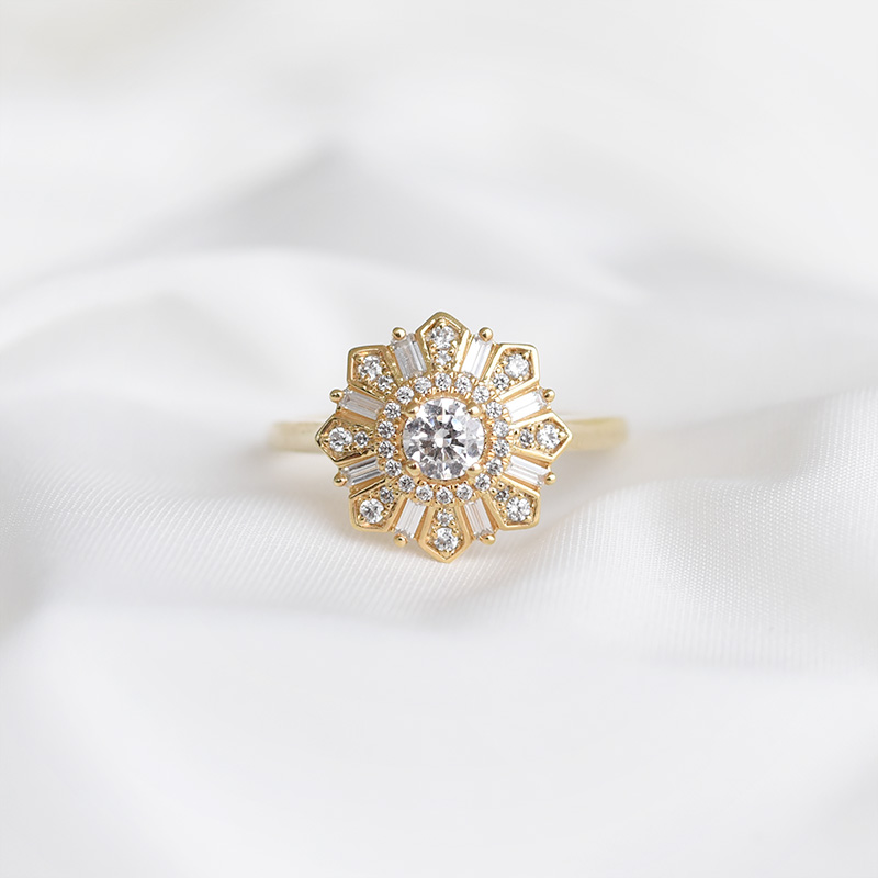 • luxuriöser Ring im Vintage-Stil mit einer wunderschönen Diamantblume