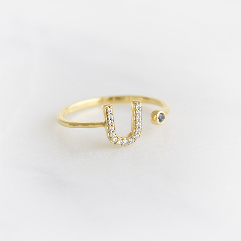 Ring mit Diamanten mit Buchstaben und Edelstein nach Wahl Armand