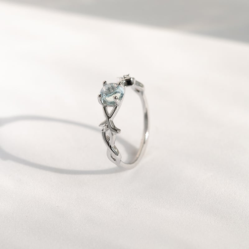 Ring mit einem Cabochon Aquamarin und Diamanten Makena