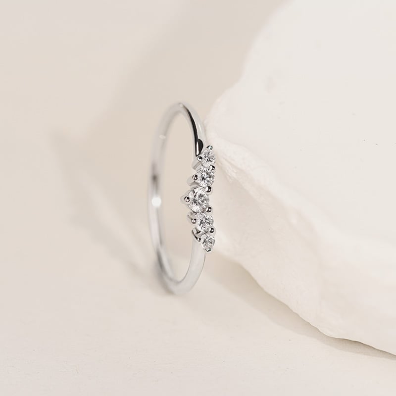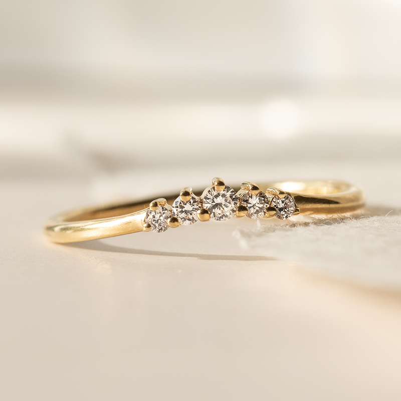 • ein schlichter Ring mit fünf Diamanten, der durch seine Zartheit und Eleganz besticht