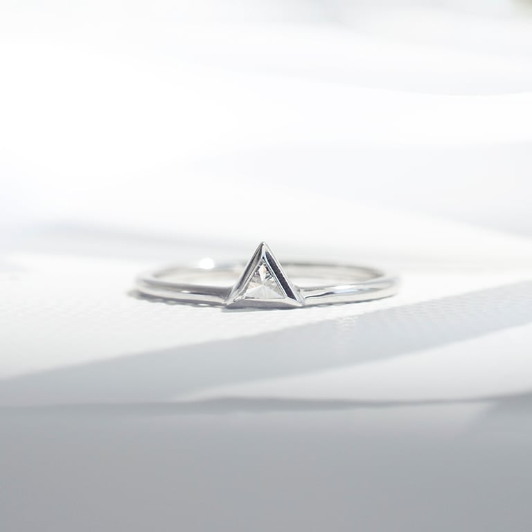 • geschmückt wird der Ring mit einem beeindruckenden dreieckigen Moissanit, der im Labor hergestellt wird und so die Natur schont