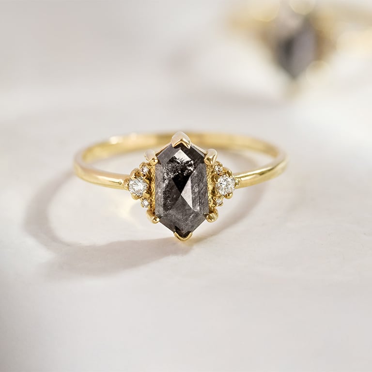 Ring mit einem Salt and Pepper Diamanten in Hexagonform Lanre