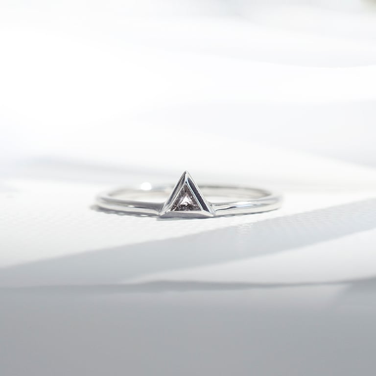 • der Salt and Pepper Diamant besticht durch seine moderne dreieckige Form (Trillion) und seinen rauchgrauen Farbton