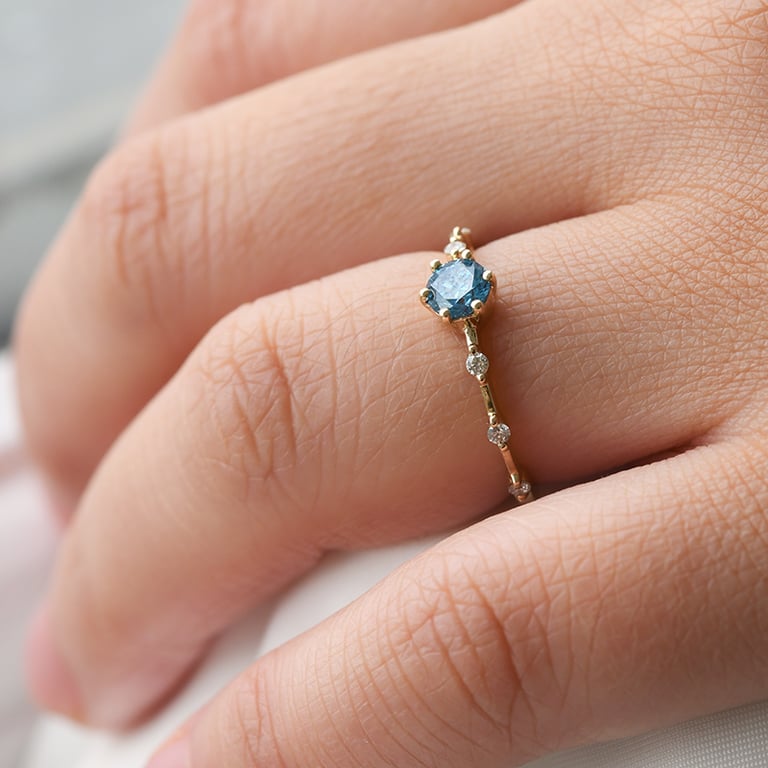 Ring mit einem zertifizierten fancy blauen Lab Grown Diamanten und weißen Lab Grown Diaman