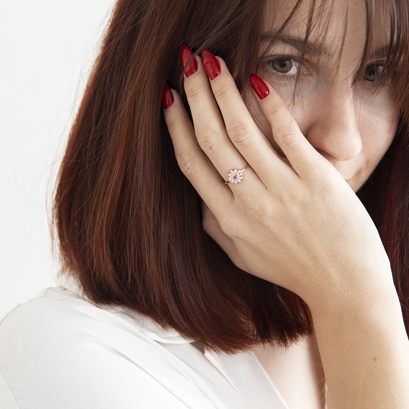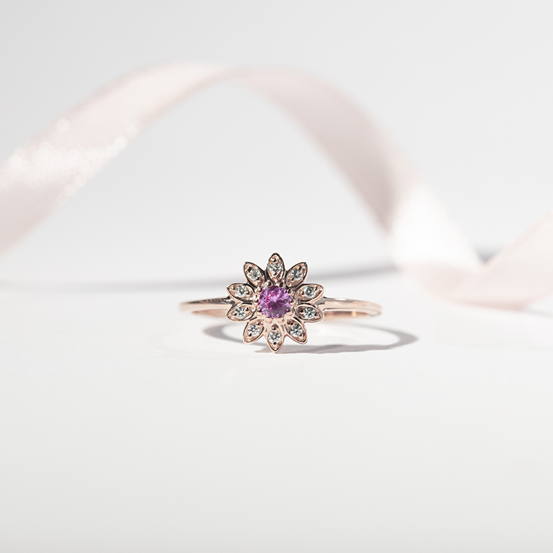 Ring mit einer Blume aus rosa Saphir und Diamanten Noely