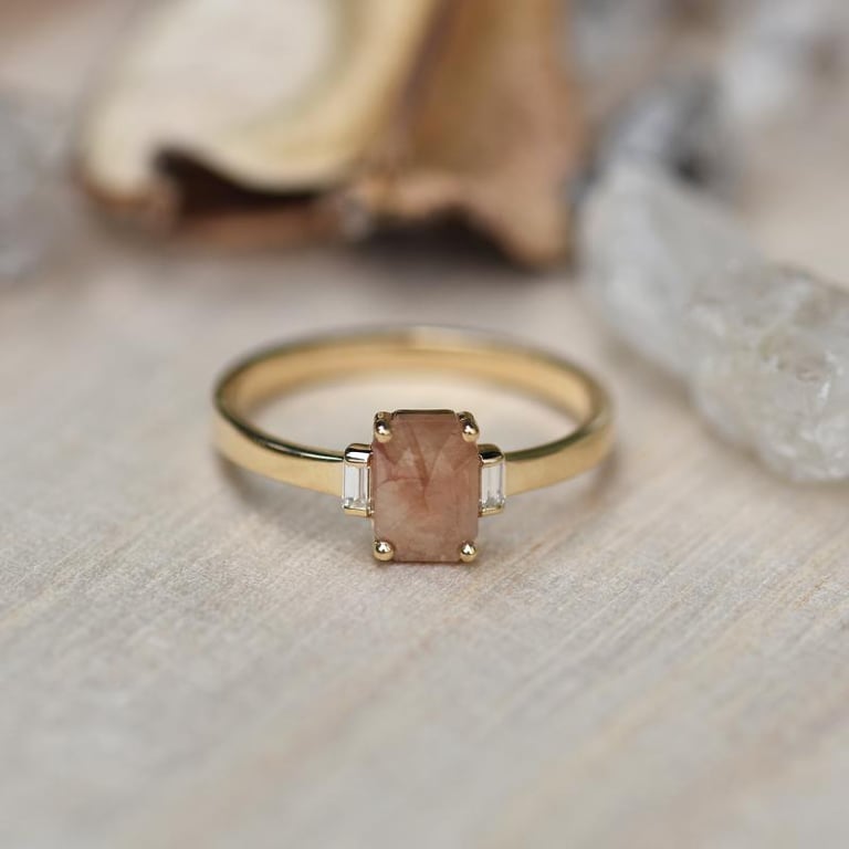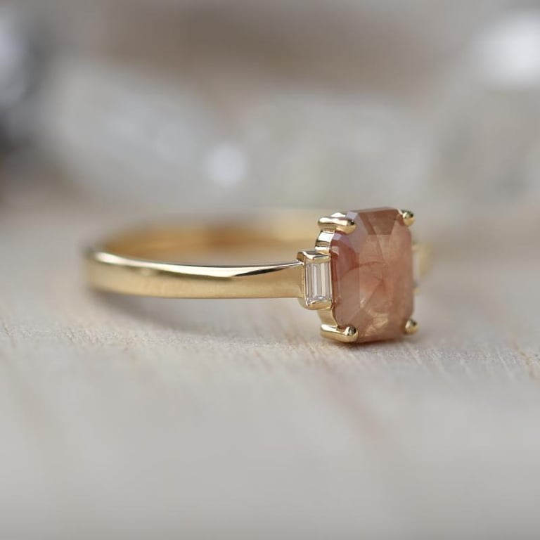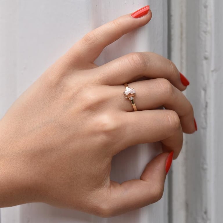 • minimalistischer Ring mit grauem Salt and Pepper Diamant in emerald Form