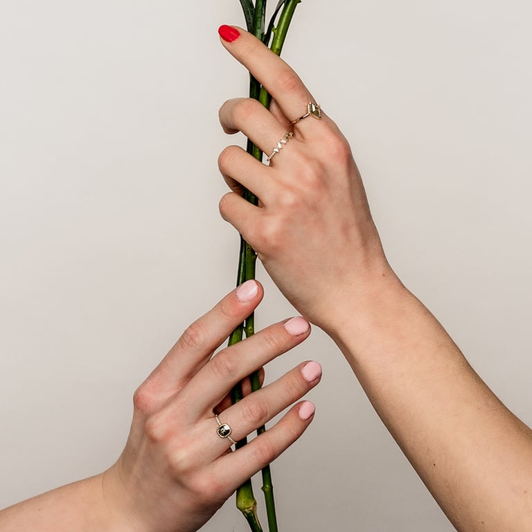 Wir stellen Schmuck aus im Labor gezüchteten Diamanten und recyceltem Gold, Silber oder Platin her. Wir wollen damit ein Zeichen setzen, dass Ethik und Nachhaltigkeit mit Luxus Hand in Hand gehen können.