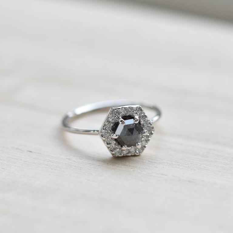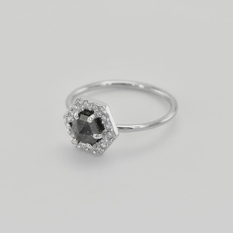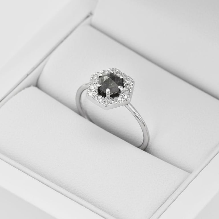 Ring mit Hexagon Salt and Pepper Diamant