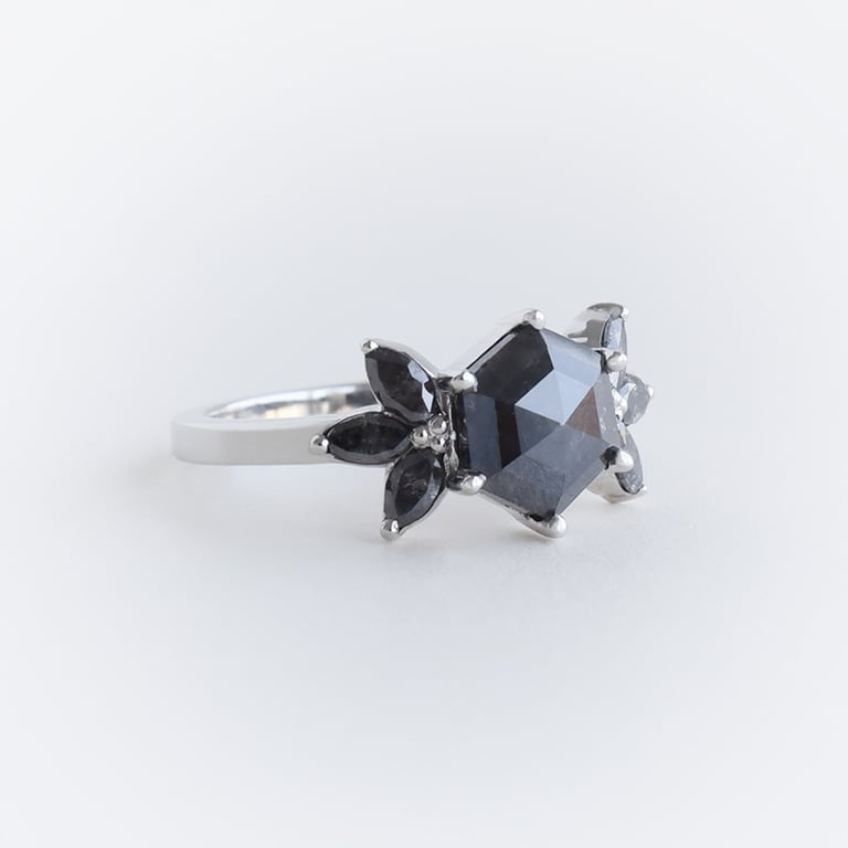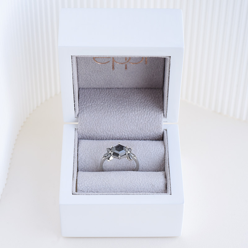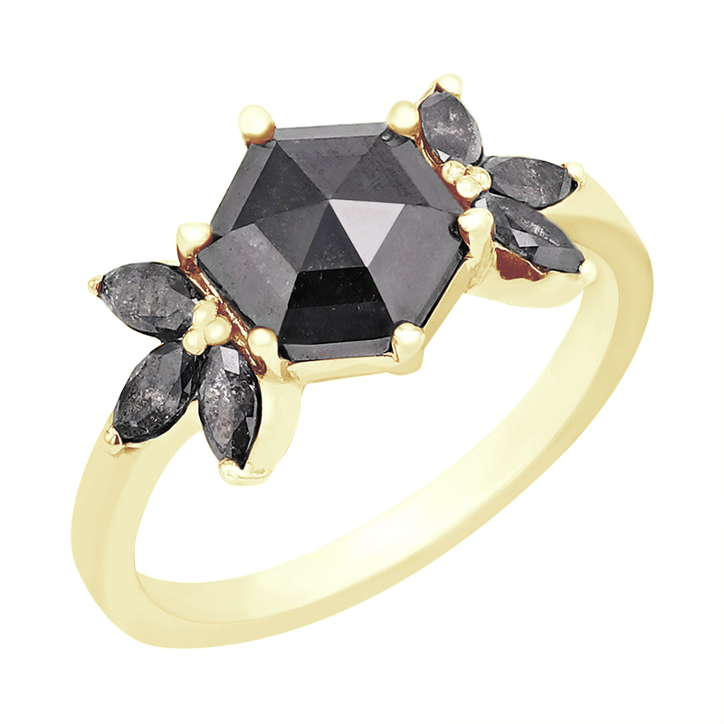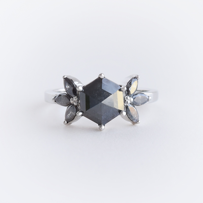 Ring mit Hexagon Salt and Pepper Diamanten und Marquise Diamanten Bonnie