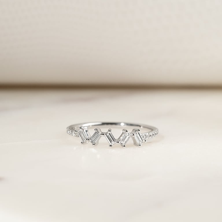 • Diamanten in Baguette-Form schaffen ein trendy geometrisches Design