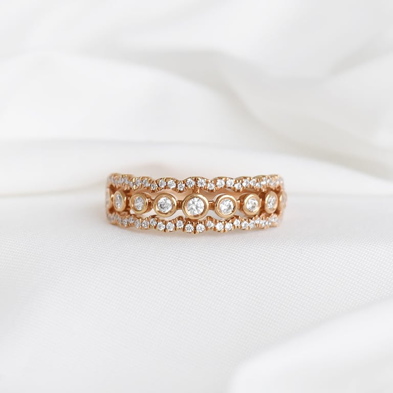 • unikate Kombination von einem geraden Ring und zwei wellenförmigen