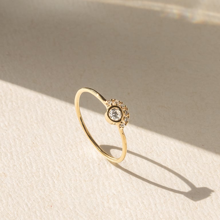 • Gold- oder Platinring, dessen Design einer Sonne ähnelt