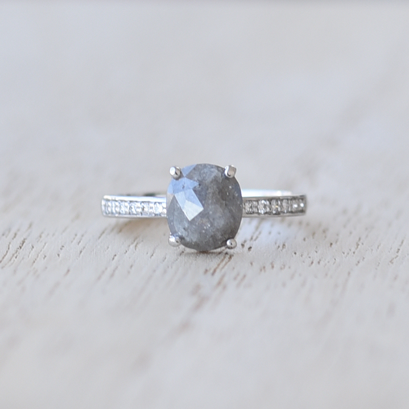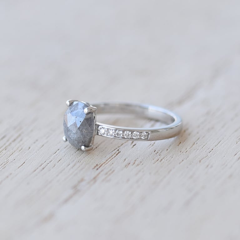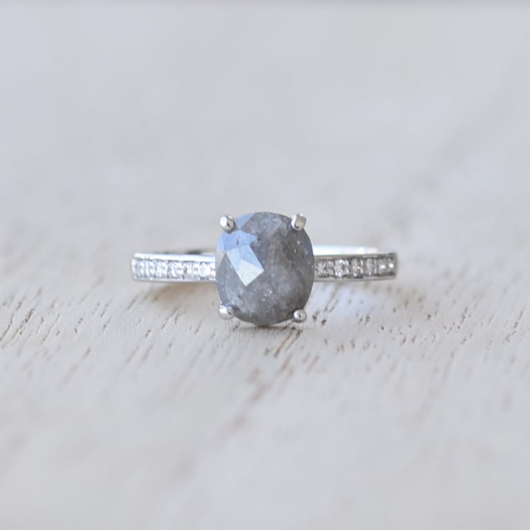 • Jeder Salt and Pepper Diamant ist ein Unikat, daher kann der eingefasste Stein etwas anders sein (wir senden Ihnen gerne ein Foto von den Diamanten, die wir einsetzen könnten und Sie können dann den auswählen, der Ihnen am nächsten liegt)