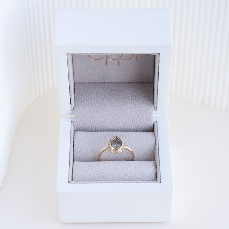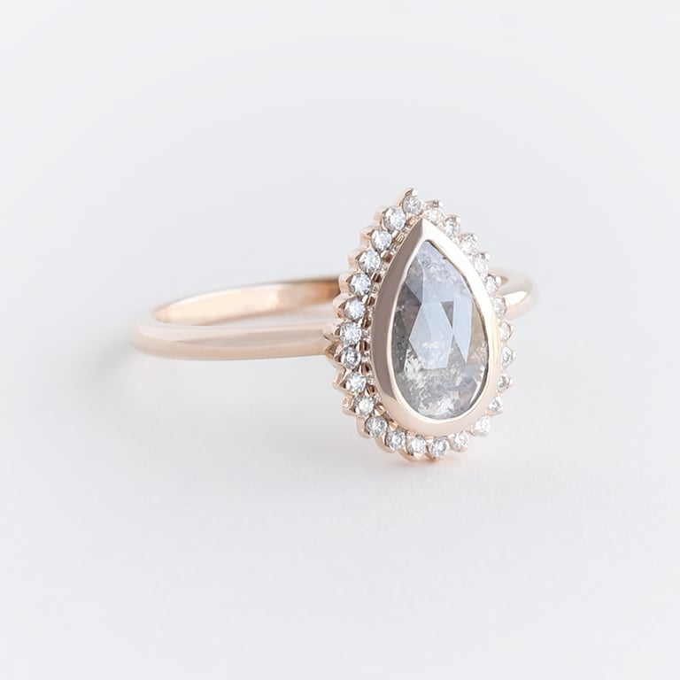 Ring mit Pear Salt and Pepper Diamanten und Diamanten Danni