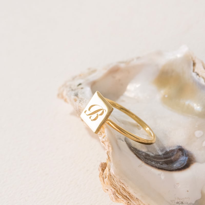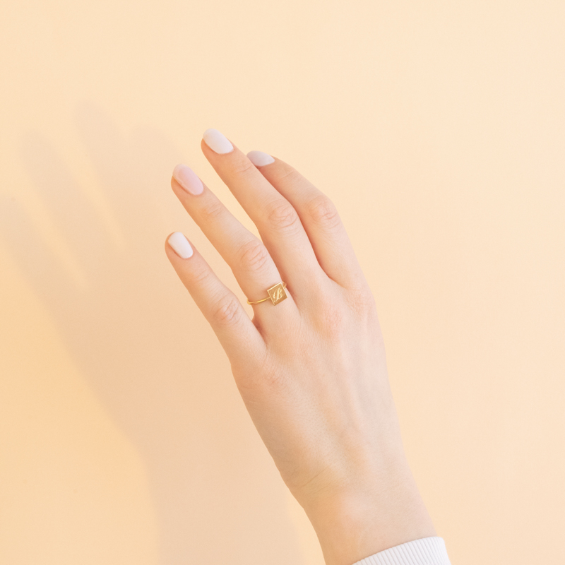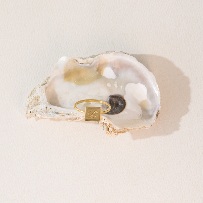 • Ring mit einer quadratischen Fläche für die Gravur eines Buchstabens nach Ihrem Wunsch