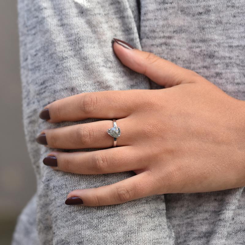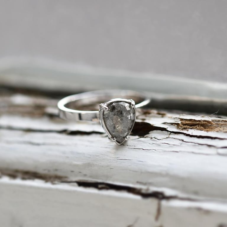 • minimalistischer Ring mit grauem Diamant in Birne Form