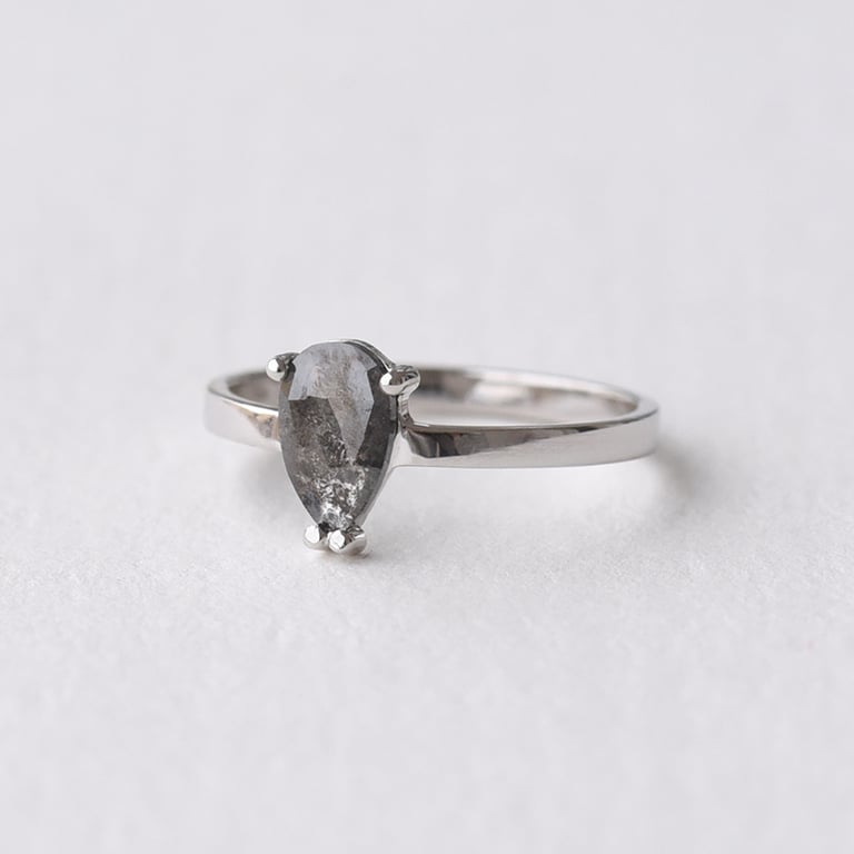 • ein Ring mit einem Salt and Pepper Diamanten in Tropfenform