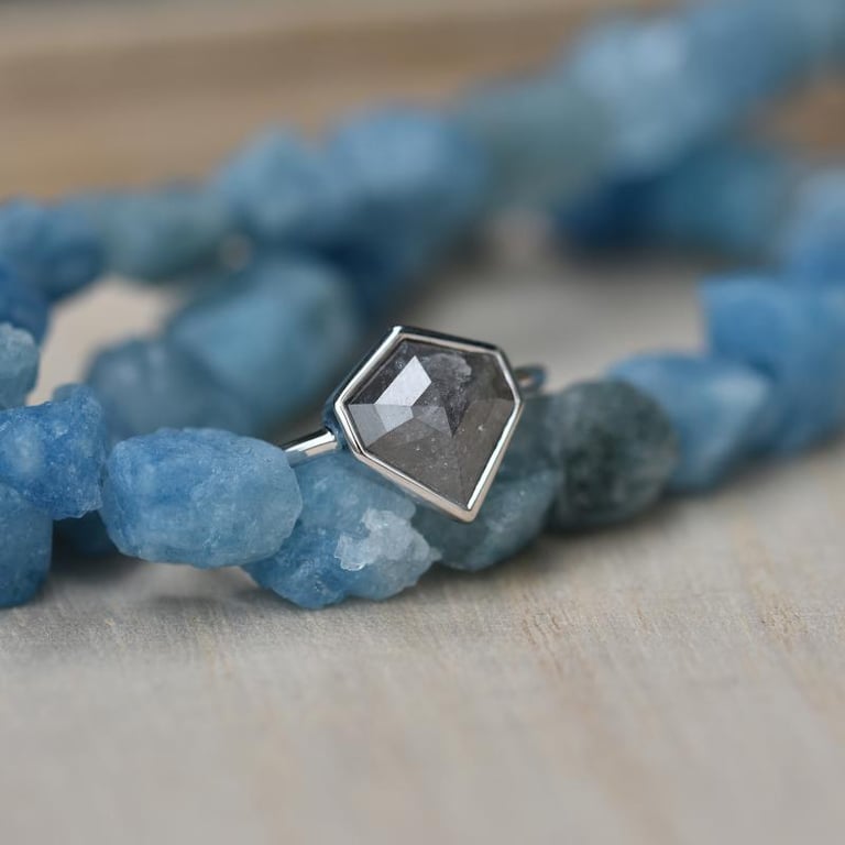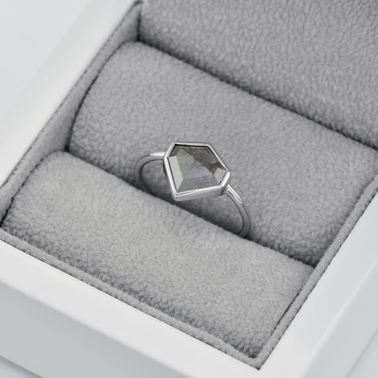 • minimalistischer Ring mit grauem Diamant in ovaler Form