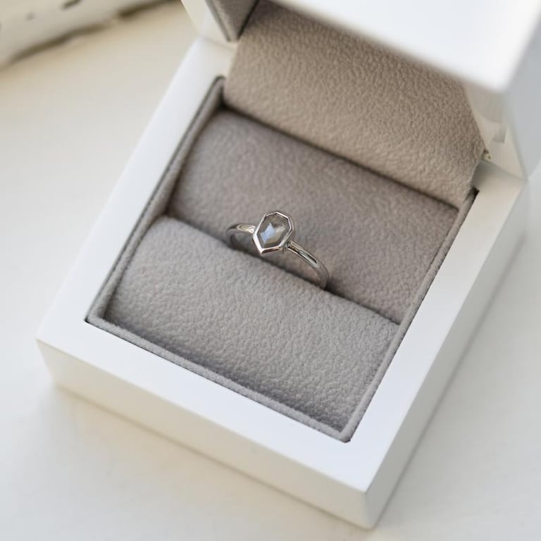 • Jeder Salt and Pepper Diamant ist ein Unikat, daher kann der eingefasste Stein etwas anders sein (wir senden Ihnen gerne ein Foto von den Diamanten, die wir einsetzen könnten und Sie können dann den auswählen, der Ihnen am nächsten liegt)