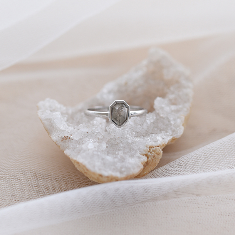 • die unverwechselbare Farbe und die unkonventionelle Form des Salt´n´Pepper Diamanten tragen zu seiner Einzigartigkeit bei