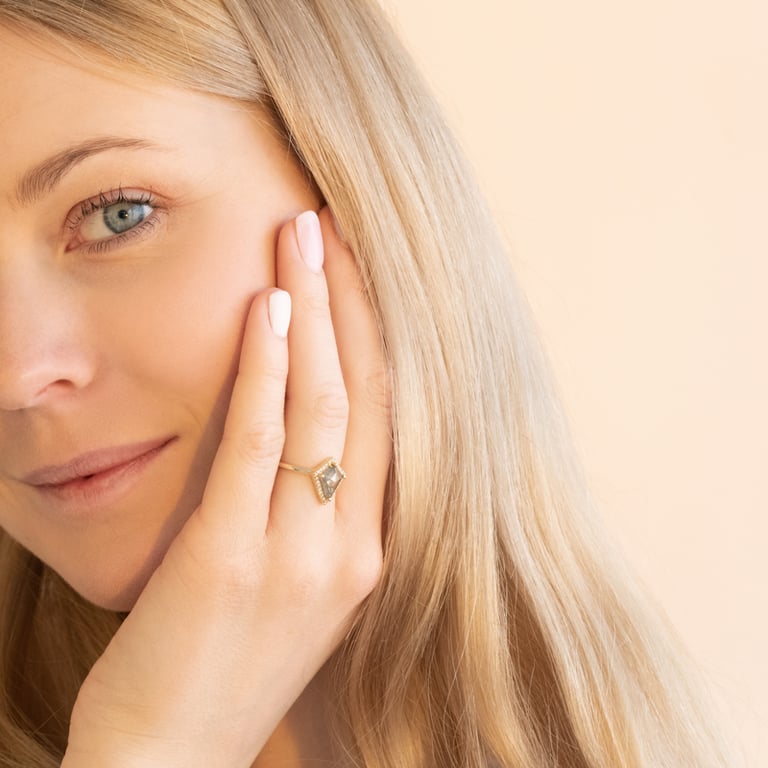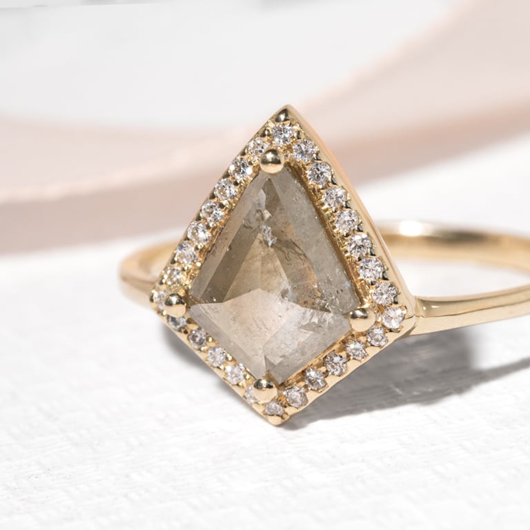 • ein atemberaubender Ring mit einem Salt and Pepper Diamanten in der extravaganten Kite-Form