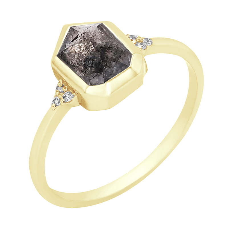 • minimalistischer Ring mit einem Salt and Pepper Diamanten als Siebeneck
