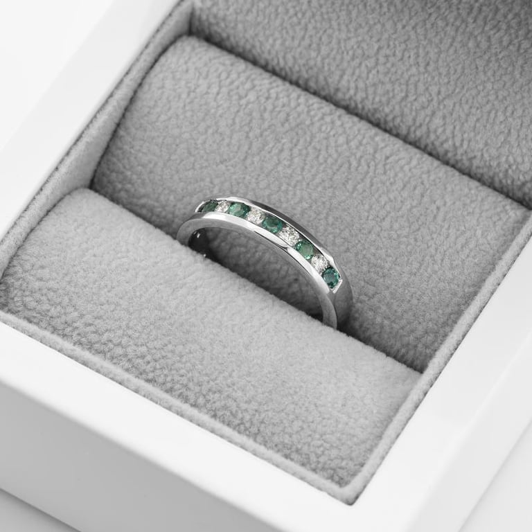 • lassen Sie sich von den atemberaubenden Smaragden und Diamanten im Halb-Eternity Rings in den Bann ziehen