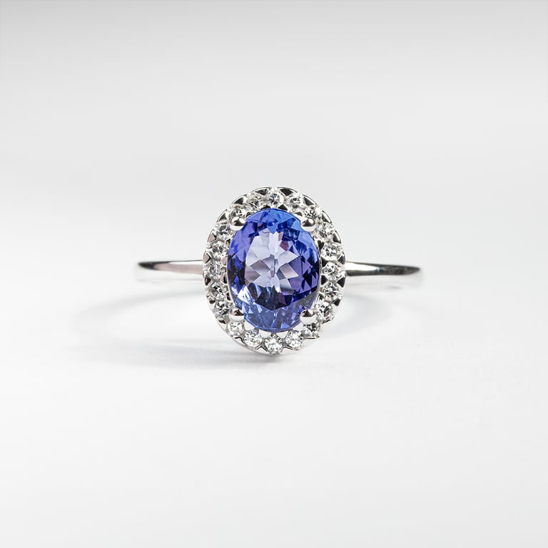 • ein beeindruckender Ring, der besonders durch den zentralen ovalen Tansanit hervorsticht