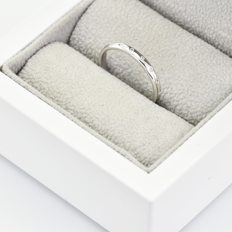 • 17 Lab Grown Diamanten sind in den glatten Ring gefasst