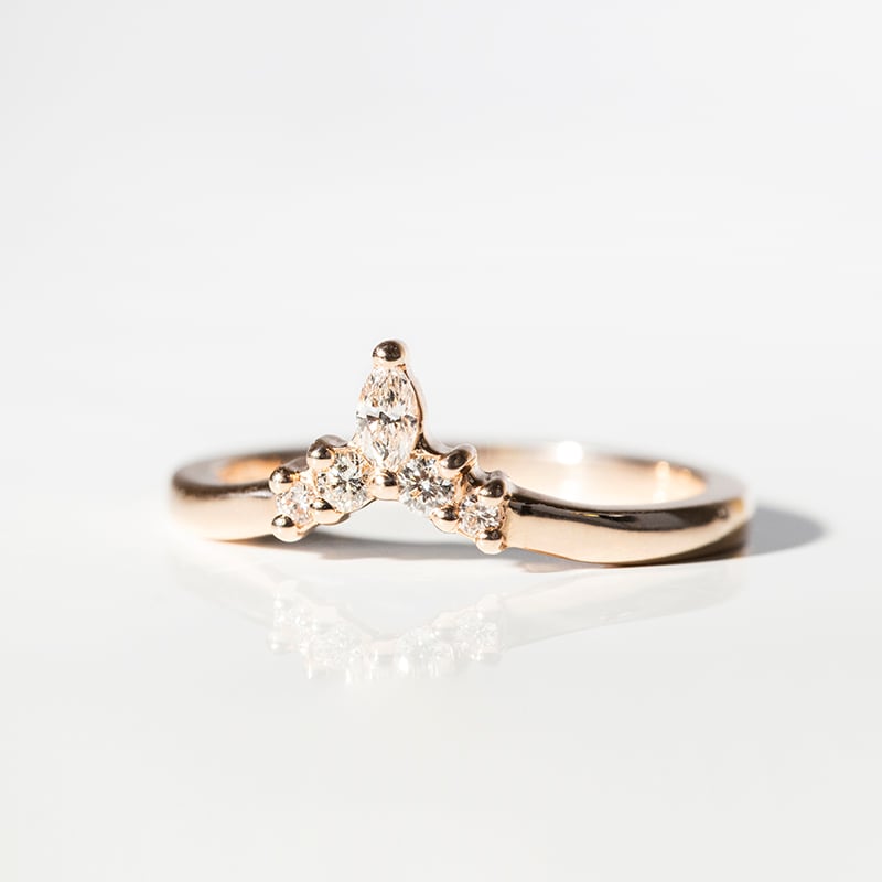 • der raffinierte Ehering in V-Form funkelt mit 5 natürlichen Diamanten