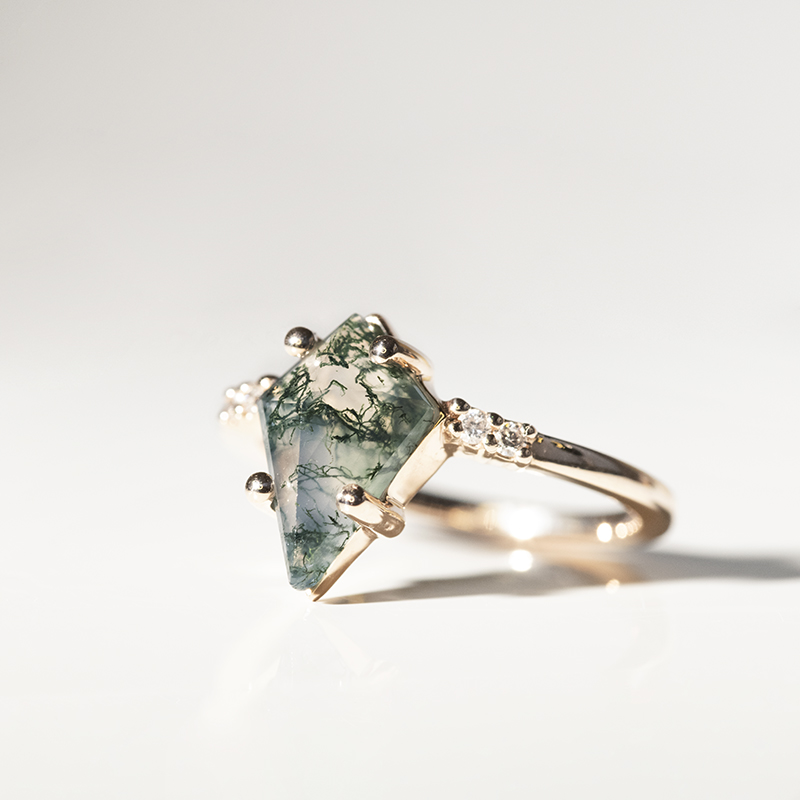 • der Verlobungsring ist mit einem Mossacht in Kite-Form besetzt