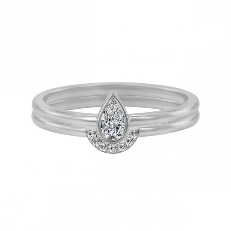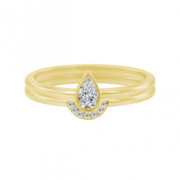 Ringset aus 585 Gold mit zertifiziertem Tropfendiamant Ralyas